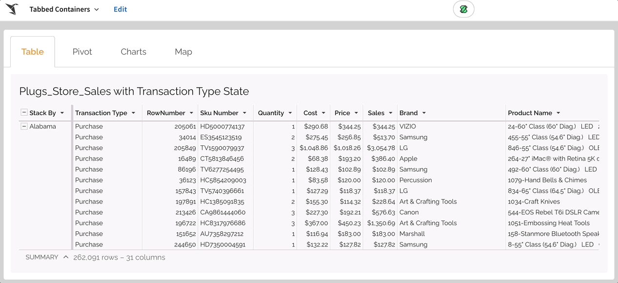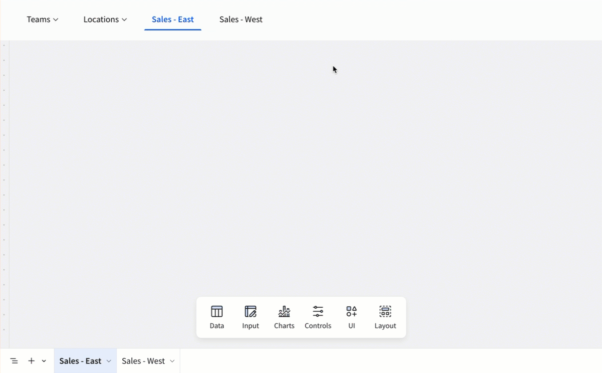 Add a tabbed container to your workbook pages when you want to offer multiple sets of content in the same section of your workbook canvas. A tabbed container has multiple tabs at the top of the container, which can either be visible or hidden for end users.