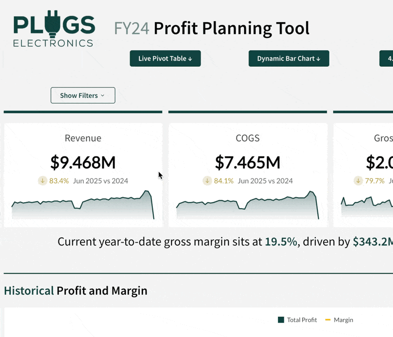 Popovers allow you to present relevant content (tables, charts, controls, etc.) only when needed, creating a more efficient and simplified workbook interface.