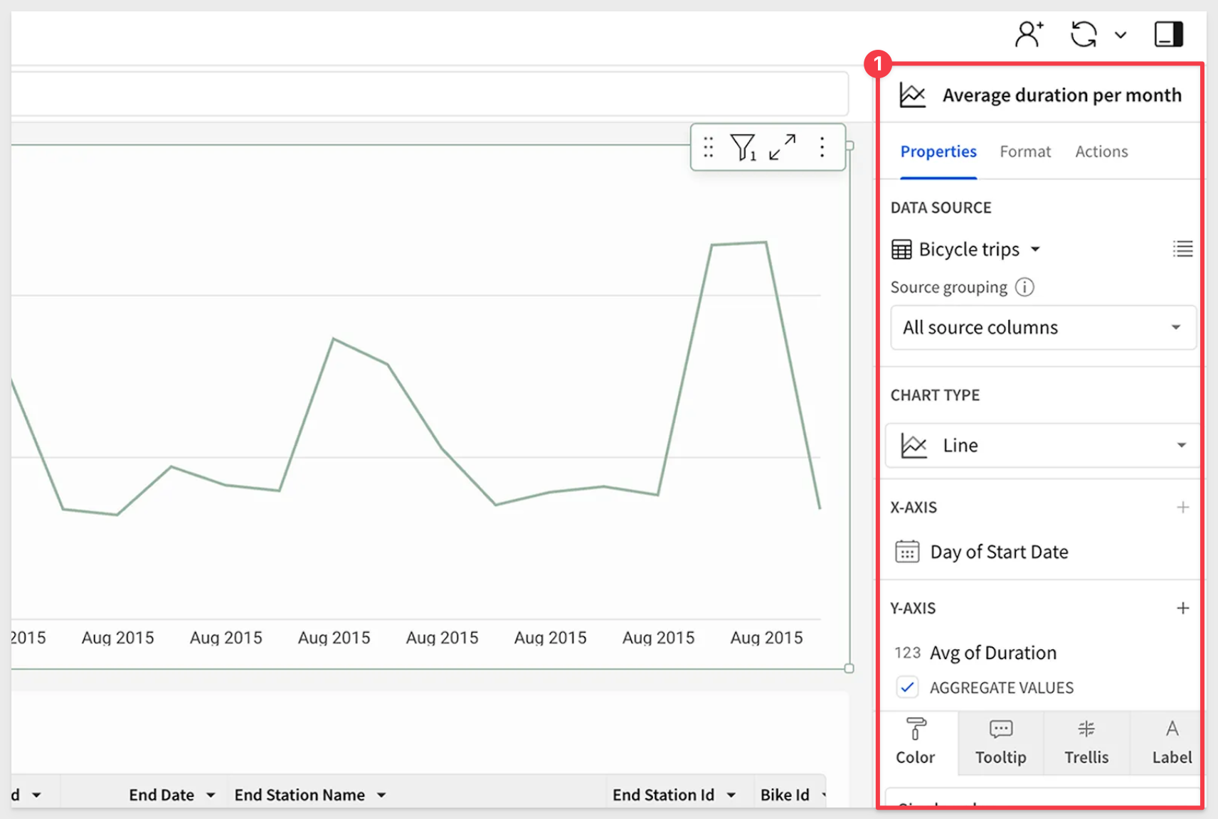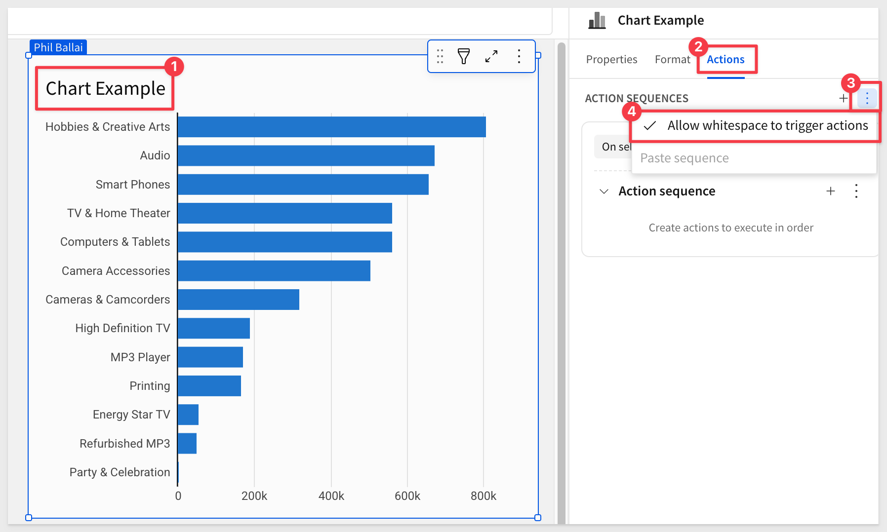 By default, actions configured on charts can be triggered when a user clicks on whitespace within the element.