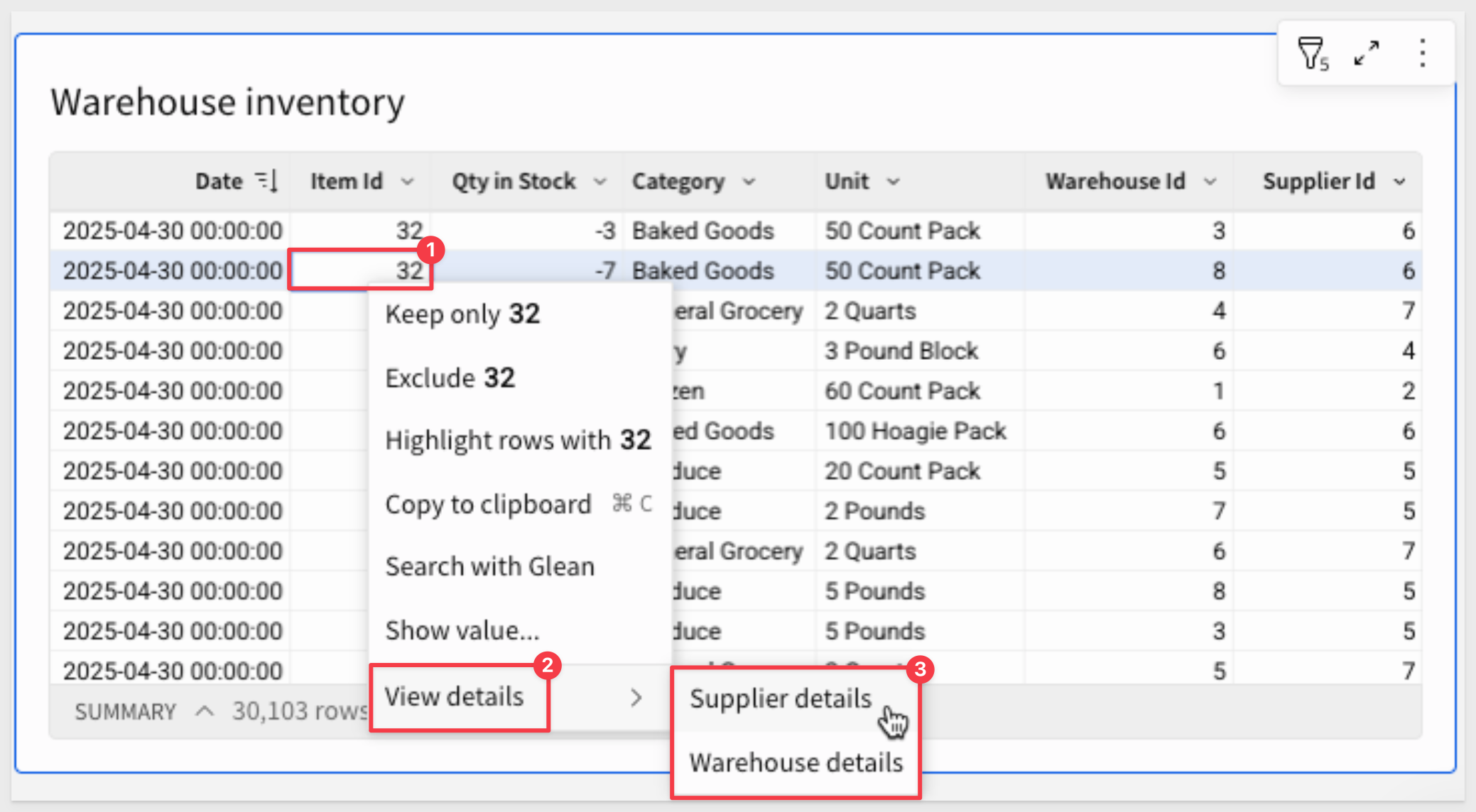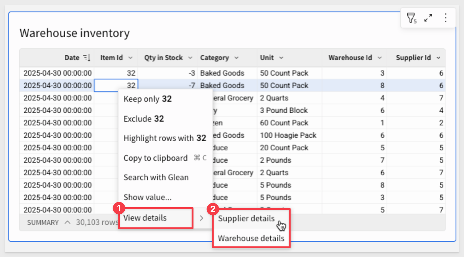 The selected values can be used to filter results in subqueries and CTEs, combined with formulas like ArrayLength, and more.
