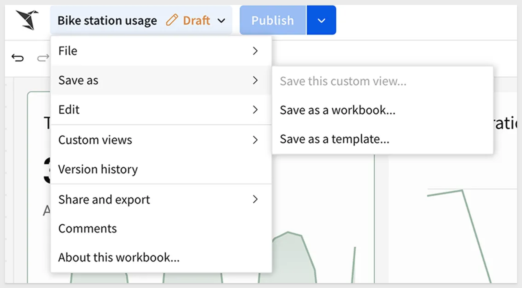 Explore, these views are now easier to create and customize. You can save them, share them, or discard changes and return to the original Workbook anytime.