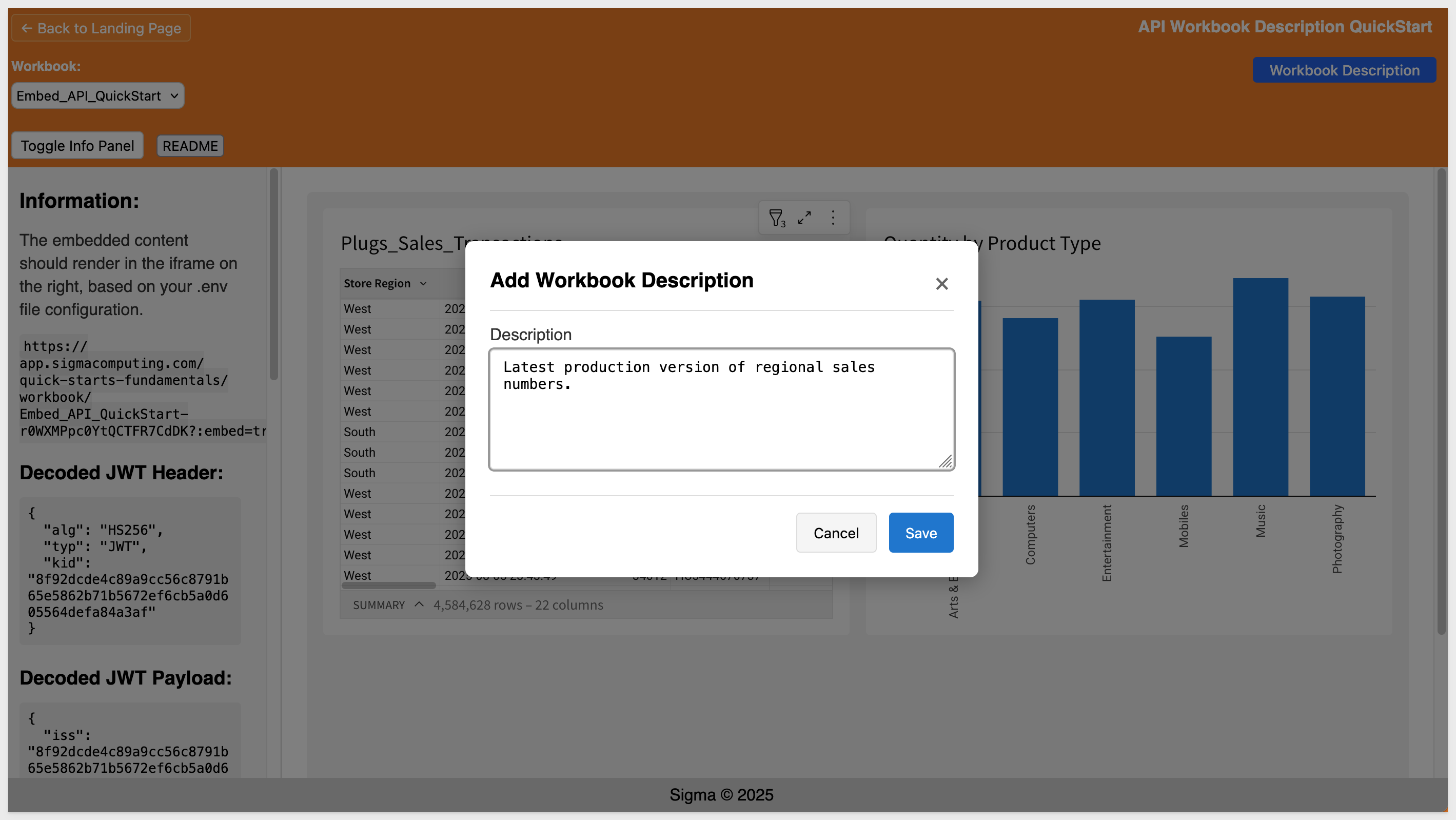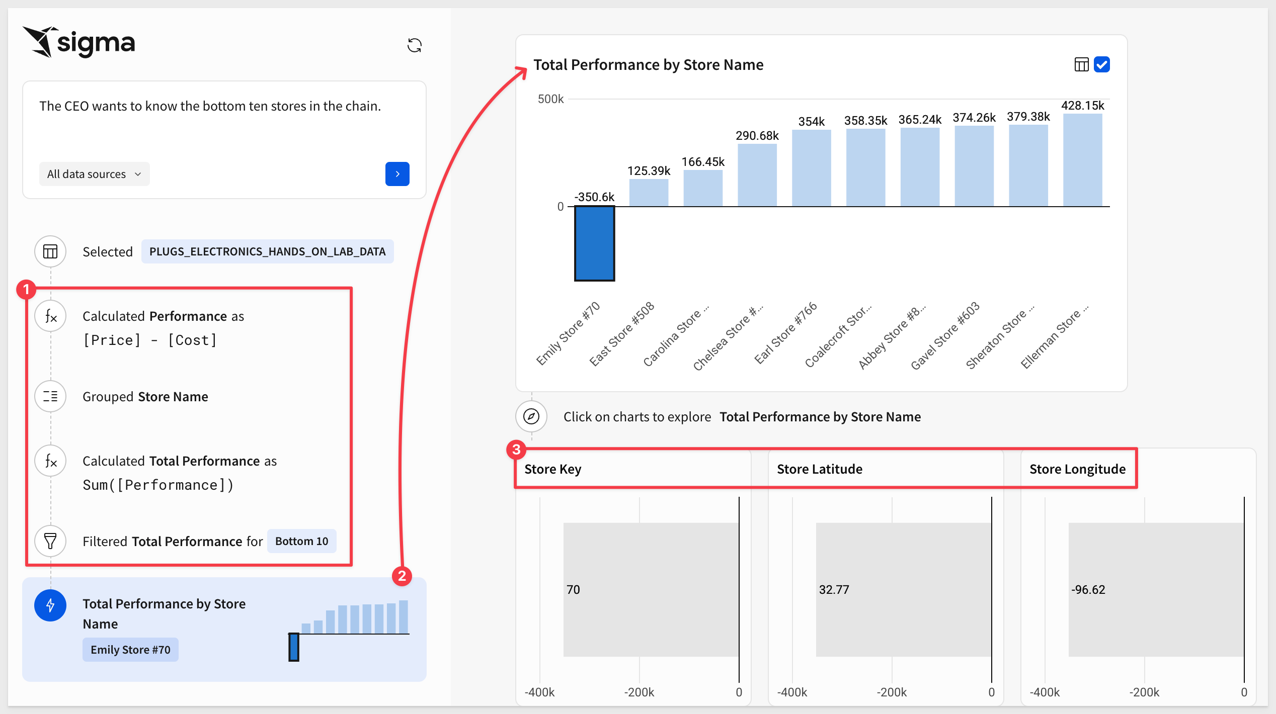 This feature opens up a whole new world of possibilities. For example, in the QuickStart , call call a Snowflake procedure and pass it a few values from Sigma contol elements for processing:
