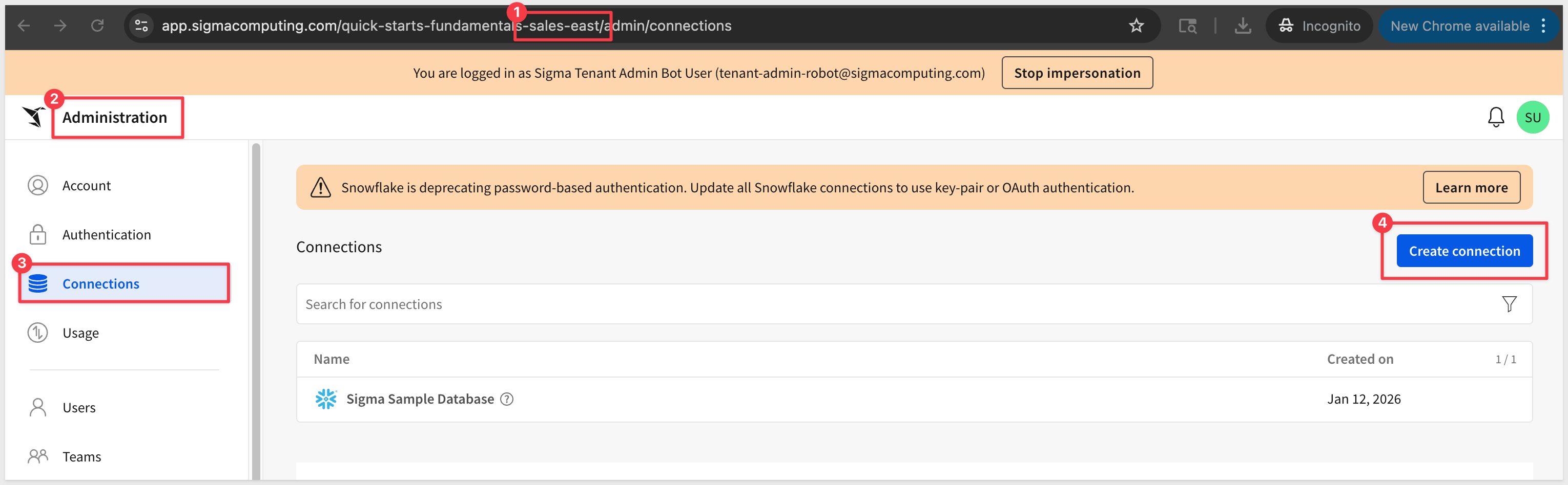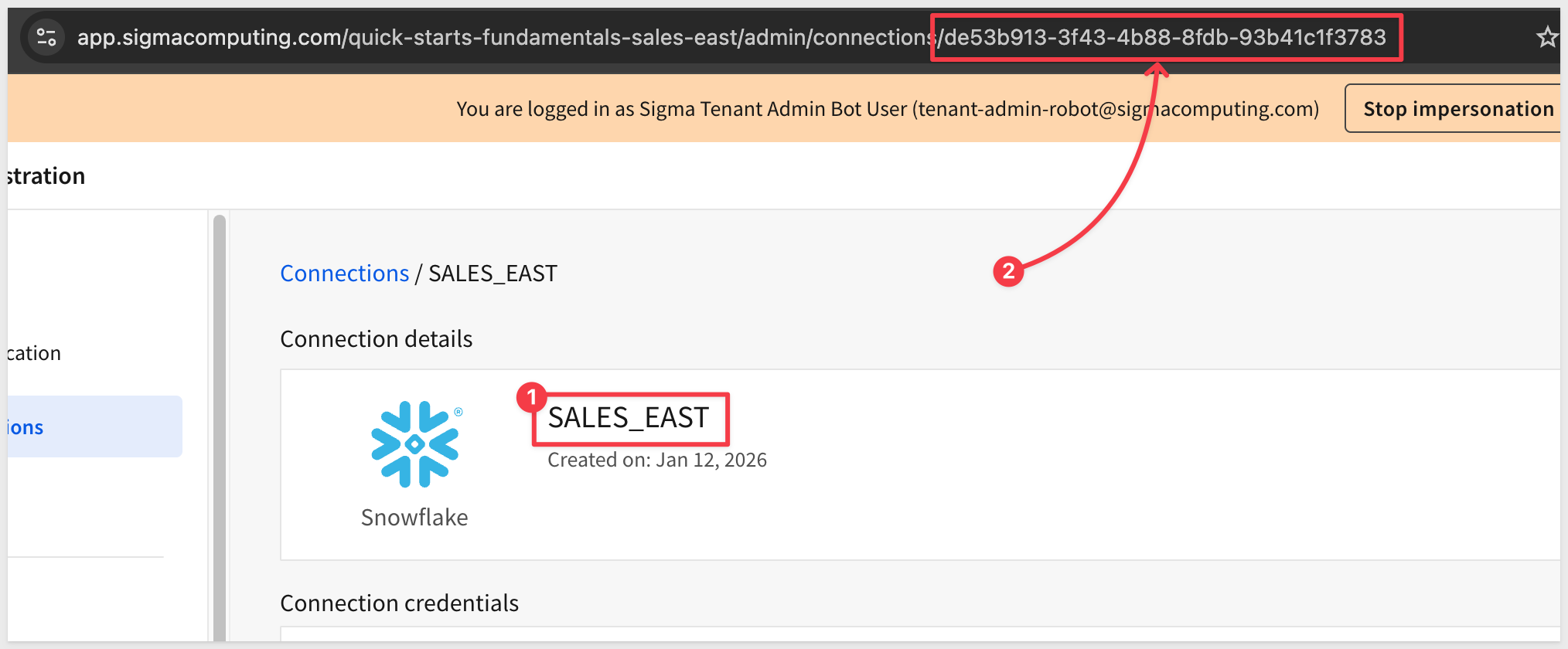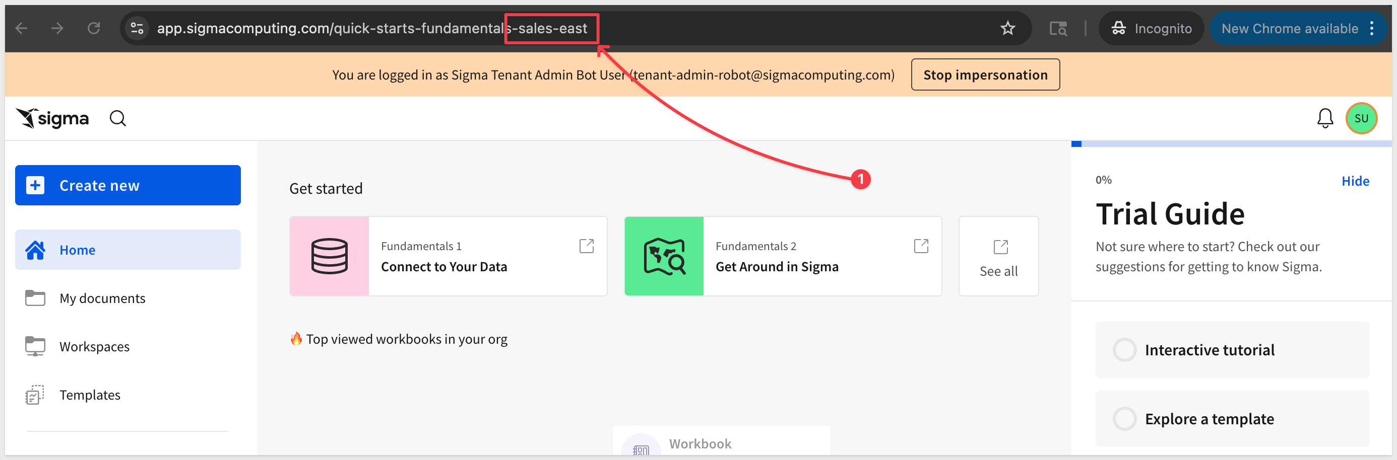 The URL shown will match your Sigma instance and we append a tenant name to the end.