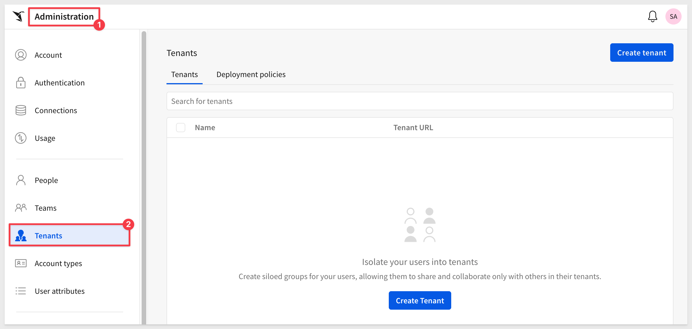 Once enabled by Sigma, the Tenants option will appear in the left sidebar.