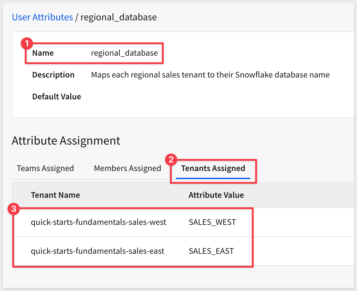 regional_databaseMaps each regional sales tenant to their Snowflake database nameCreate the third attribute:
