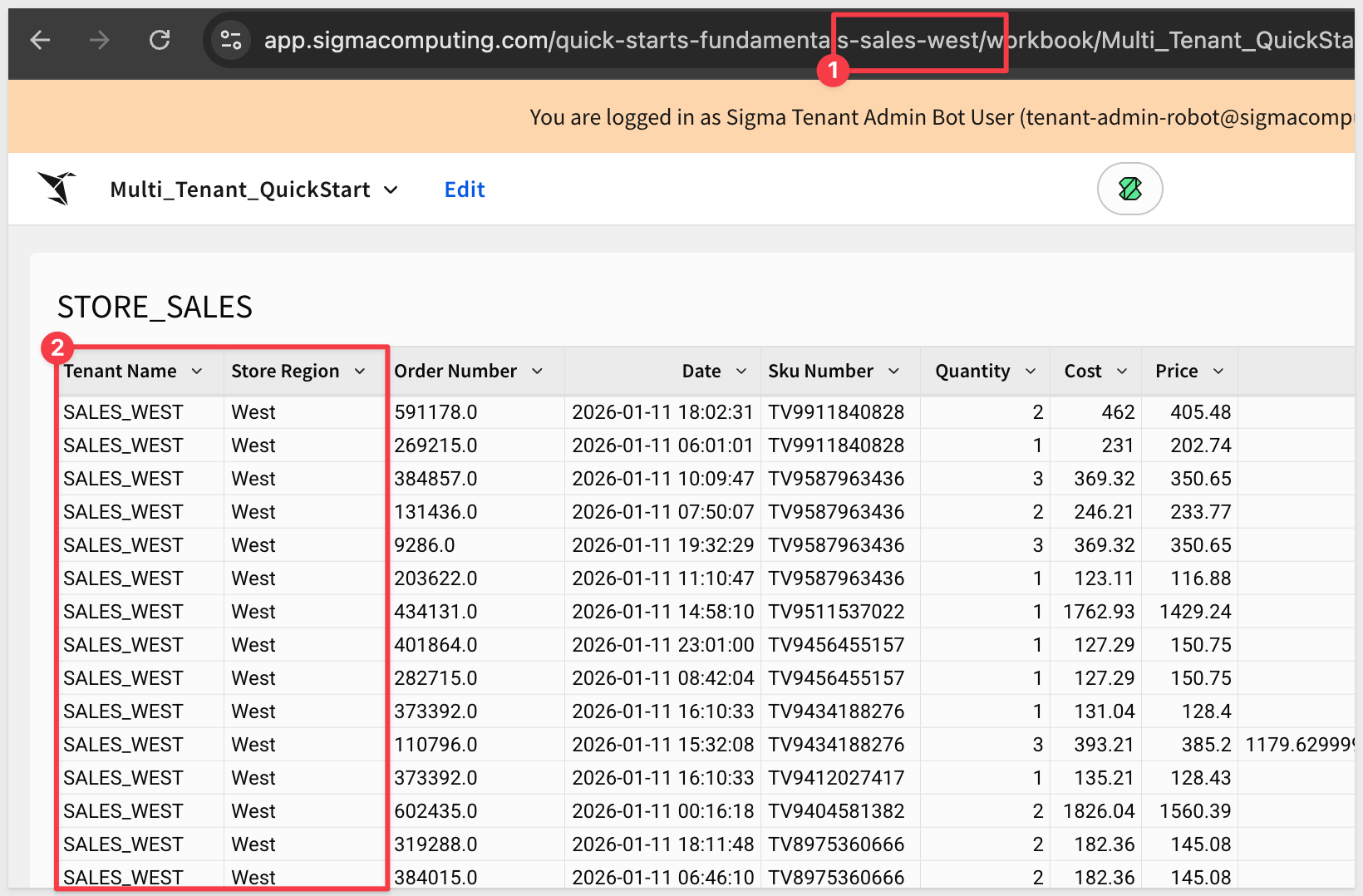 Open the same Multi_Tenant_QuickStart workbook in the Sales-West tenant.