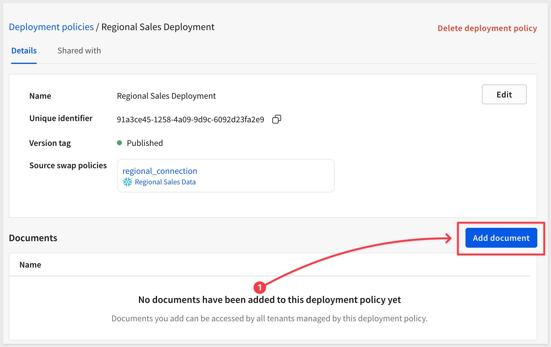 Once the deployment policy is created, you'll add content to the policy and share them with tenants: