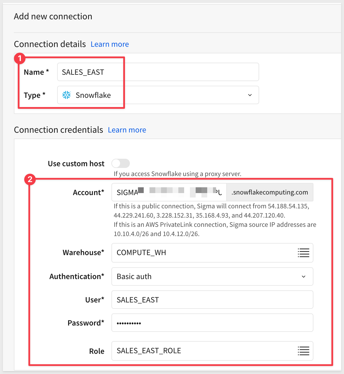 Role: [ACCOUNTADMIN or your service role, e.g., SIGMA_SERVICE_ROLE]