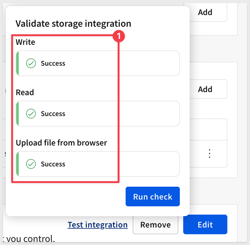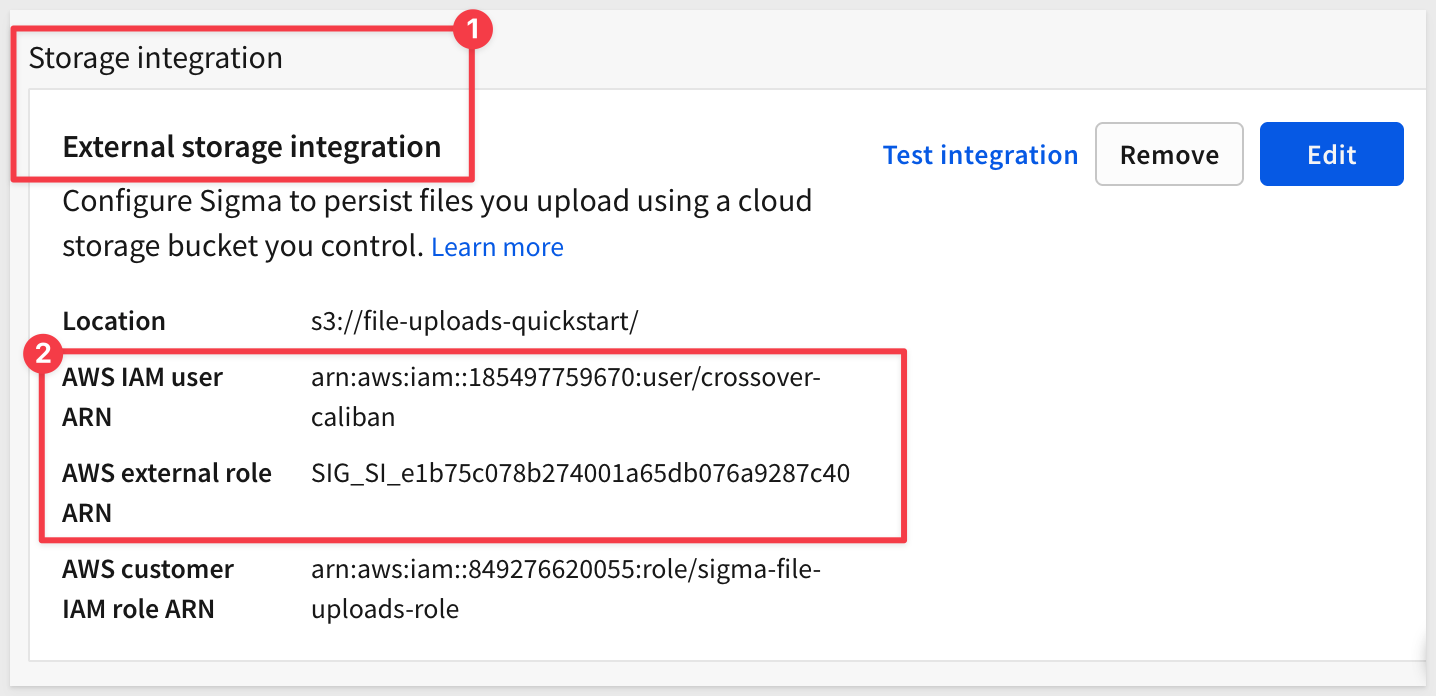 Return to Sigma and click Test connection on the Storage Integration page: