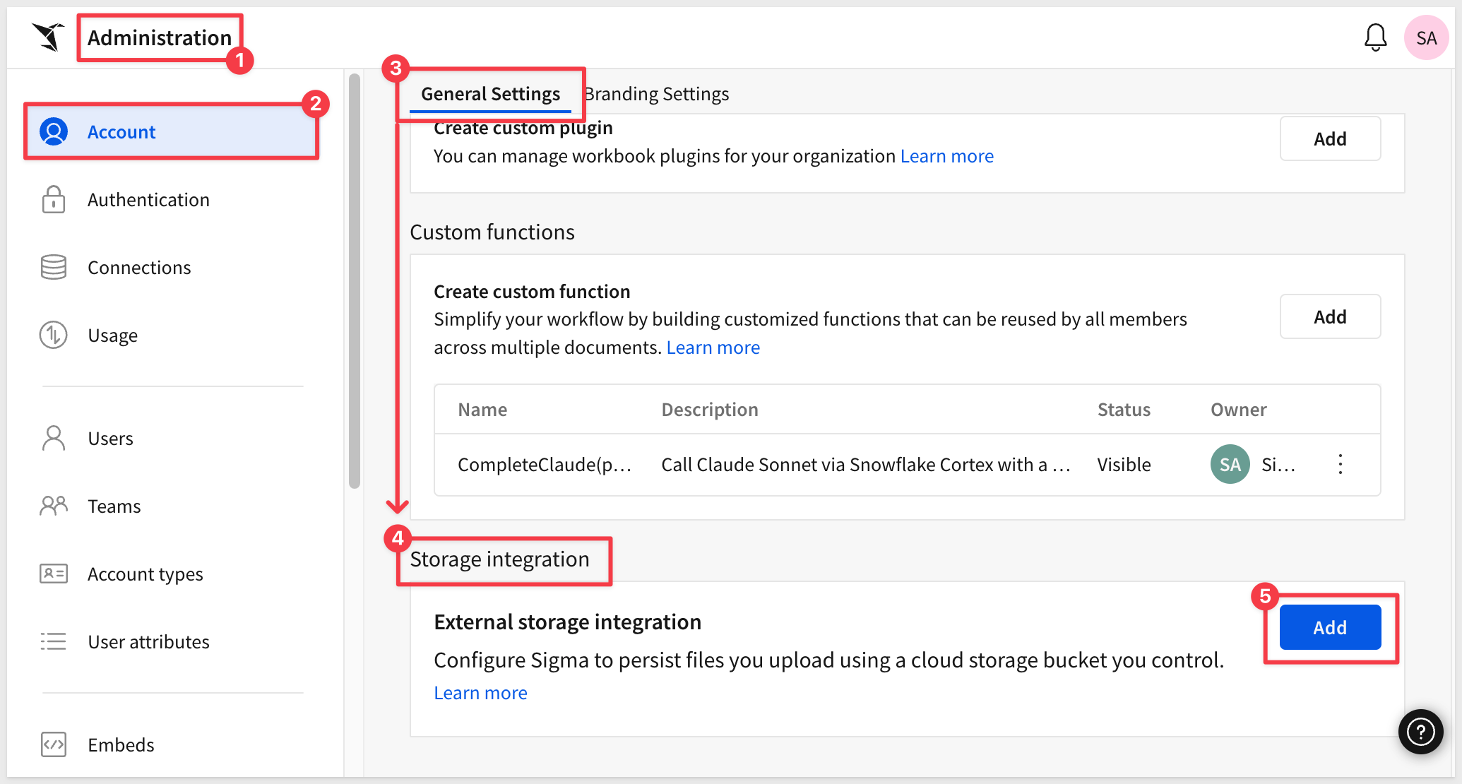 Log into Sigma as Administrator and navigate to Administration > Account > Storage Integration and click Add: