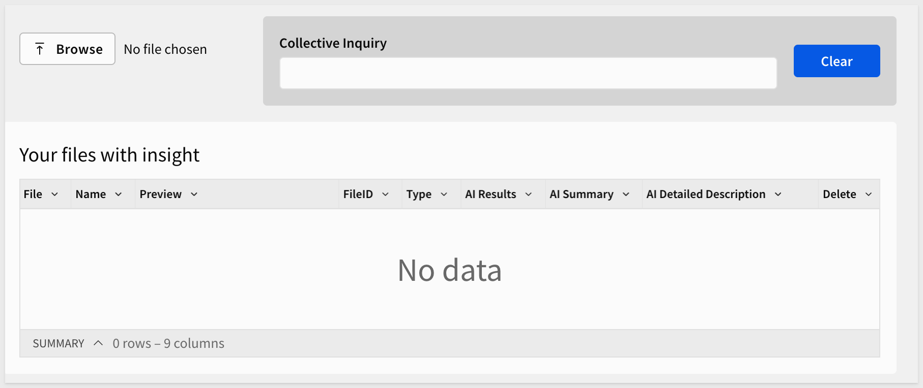 The AI will analyze all uploaded files collectively and provide an integrated answer based on their combined content. Use the Clear button to reset the inquiry field when needed: