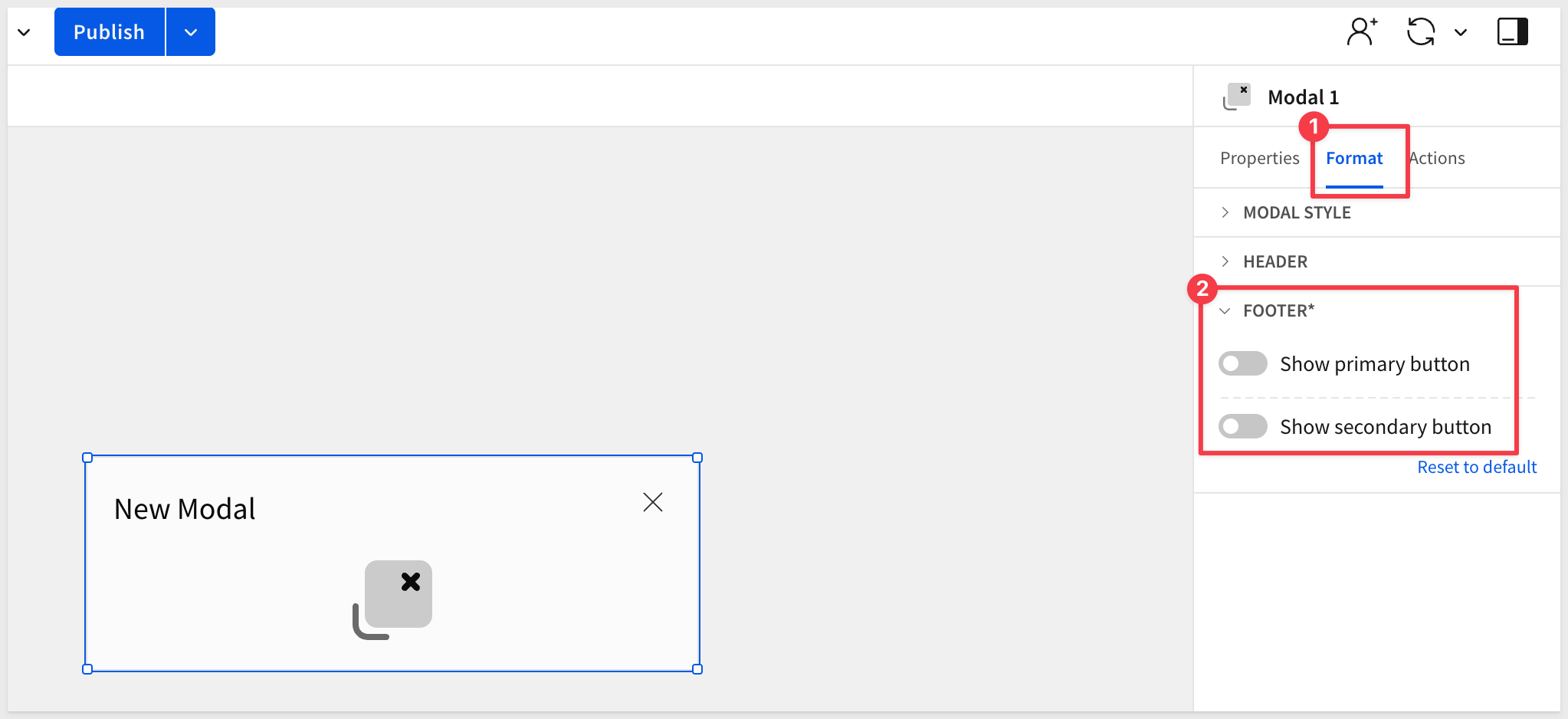 Click Actions in the properties panel.