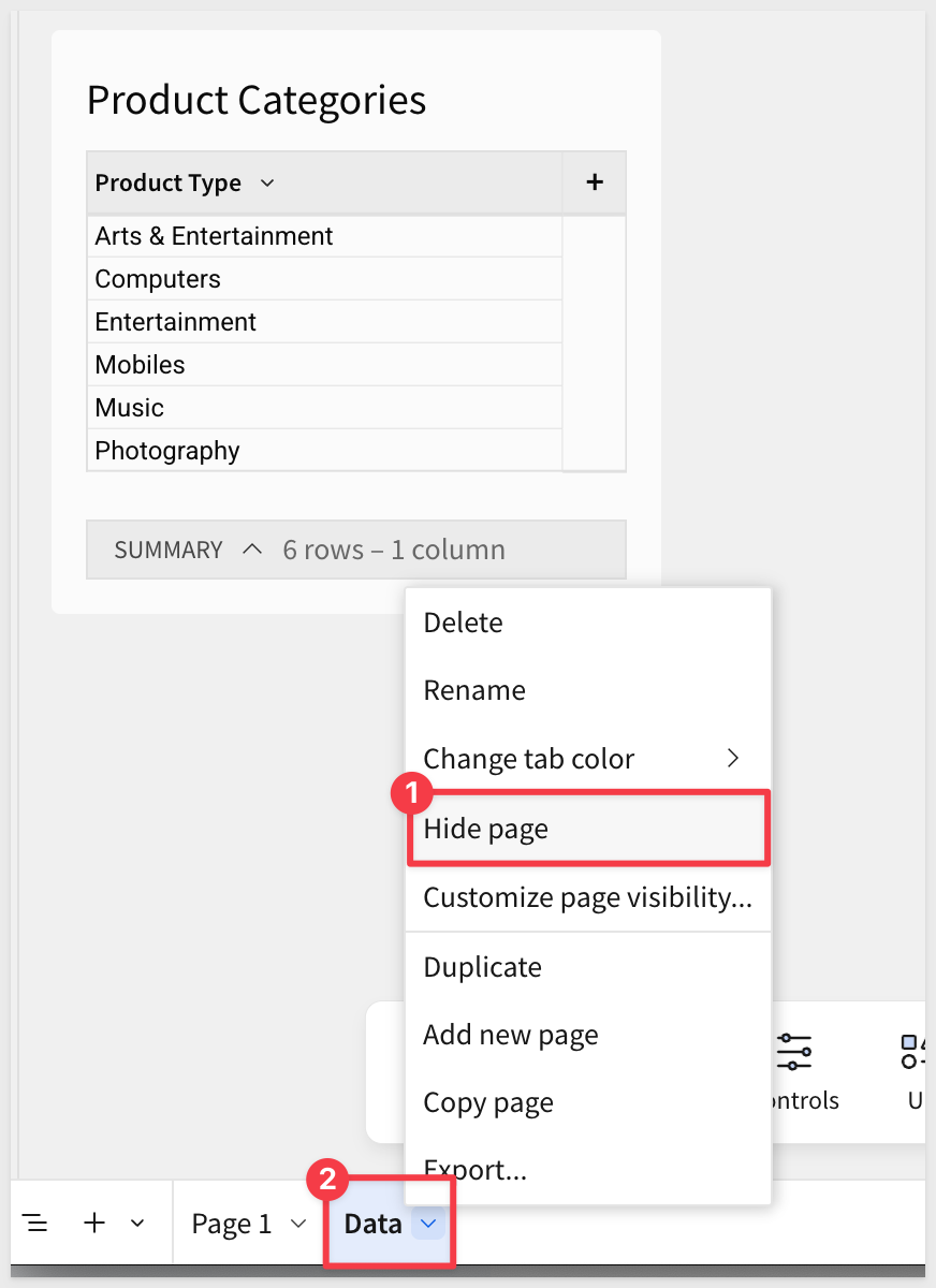 Set the Data page to be Hidden:
