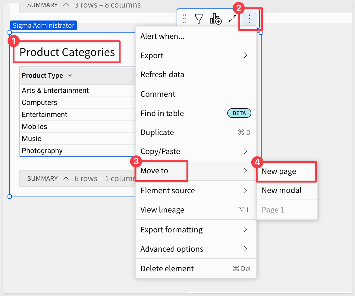 In the Element panel, delete all columns except Product Type: