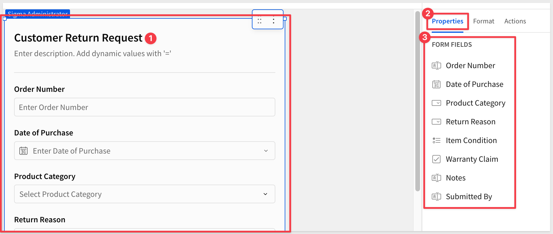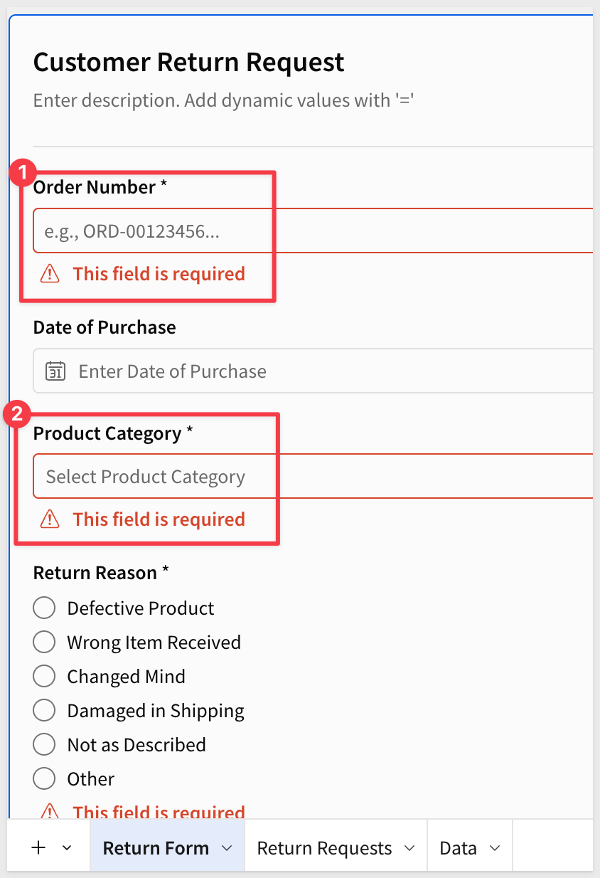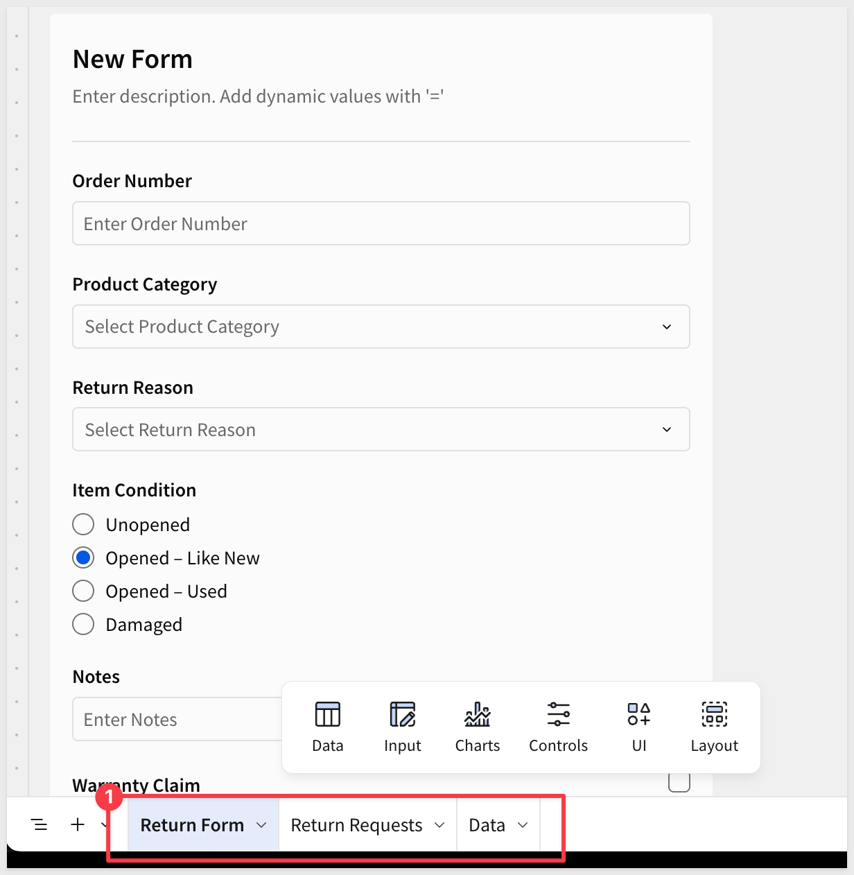 Click the form title and change it from New Form to Customer Return Request.