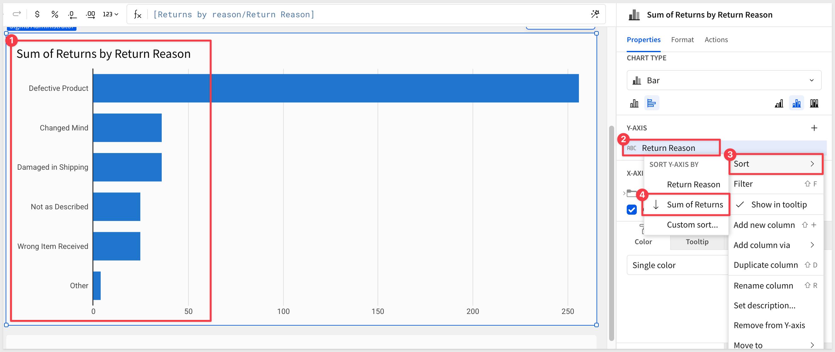Sort the Y-AXIS on Sum of Returns descending:
