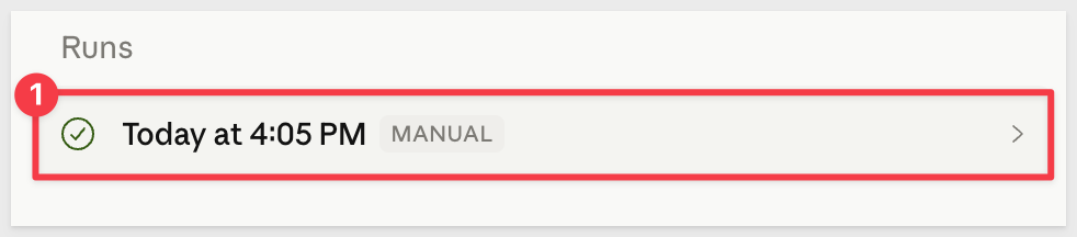 Clicking into a Runs entry shows a log of every step Claude executed during that run: