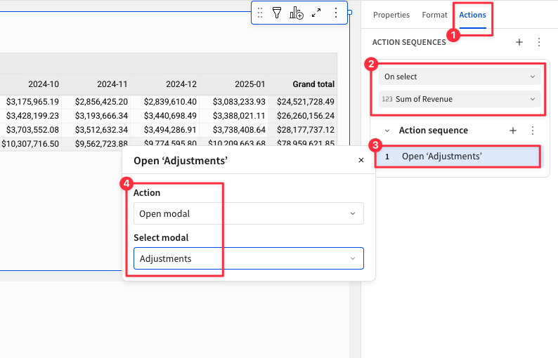 At this point if we click on any value in the Revenue Planning pivot table, the modal will appear.