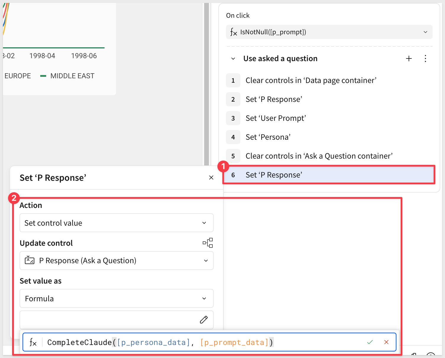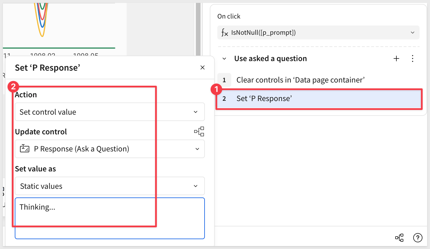 Add another action, and set the control value to update the Response control on the Ask a Question page, using this formula: