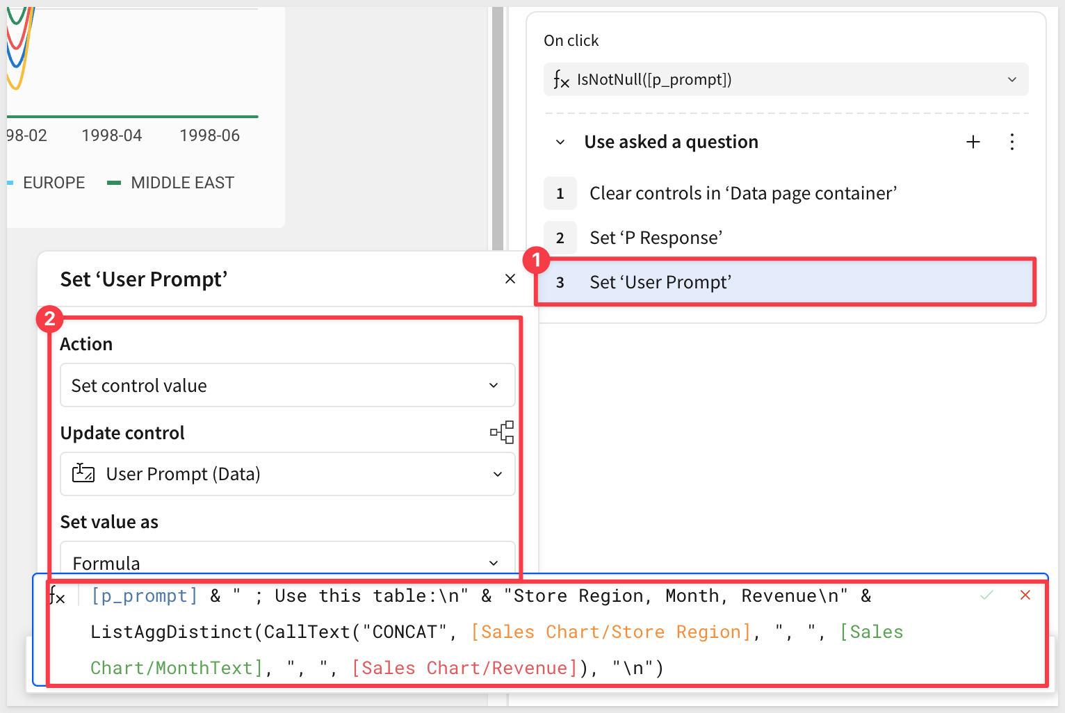 [p_prompt] & " ; Use this table:\n" & "Store Region, Month, Revenue\n" & ListAggDistinct(CallText("CONCAT", [Sales Chart/Store Region], ", ", [Sales Chart/MonthText], ", ", [Sales Chart/Revenue]), "\n")
