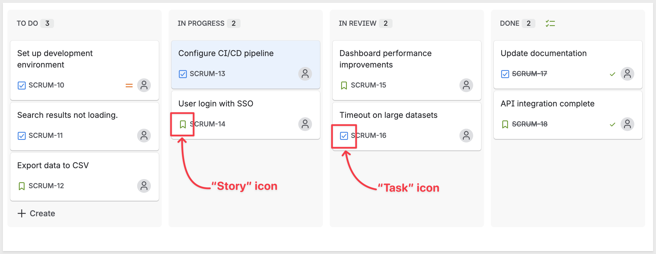 Alternatively, you can verify by simply viewing your board - all the issues you created should be visible in their respective columns.