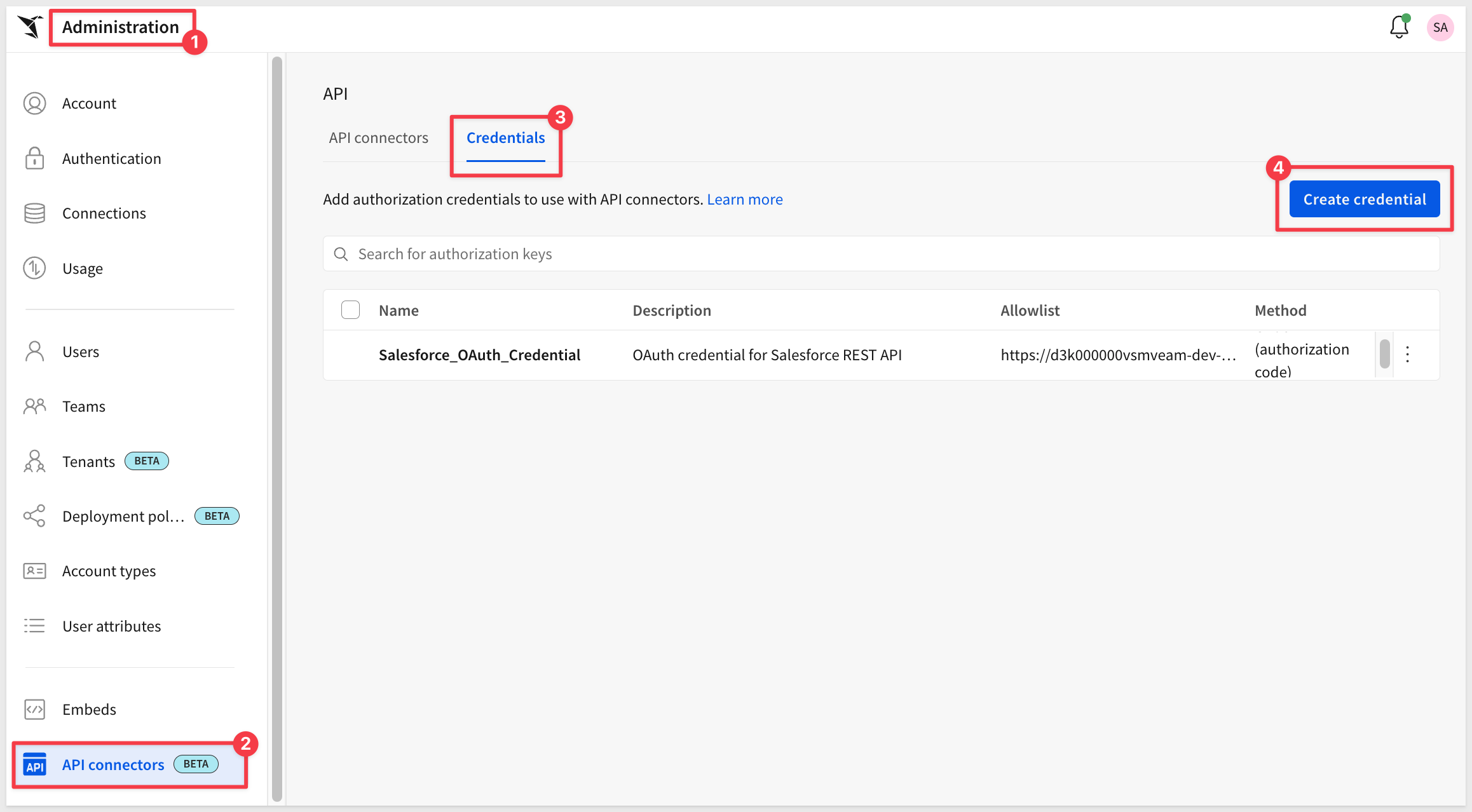 Save.The credential is now available for use in API connectors throughout your Sigma organization.
