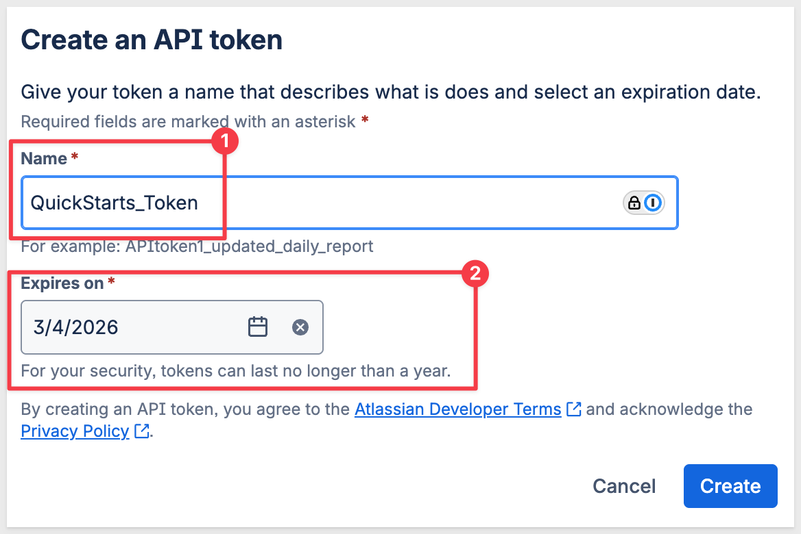 QuickStarts Token and give it a date in the future that allows enough time to complete testing: