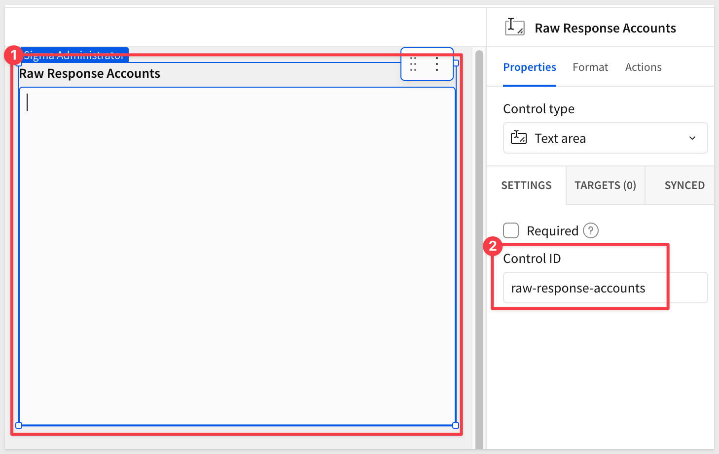 Click Add element and select Controls > Text area. Label it Raw Opp Response.