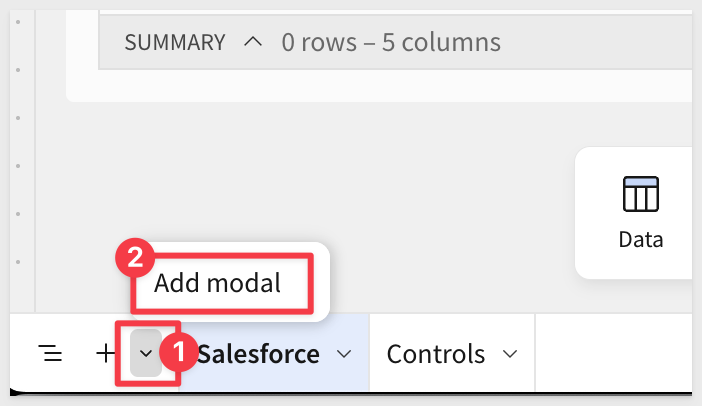 Add a new Modal to the workbook:
