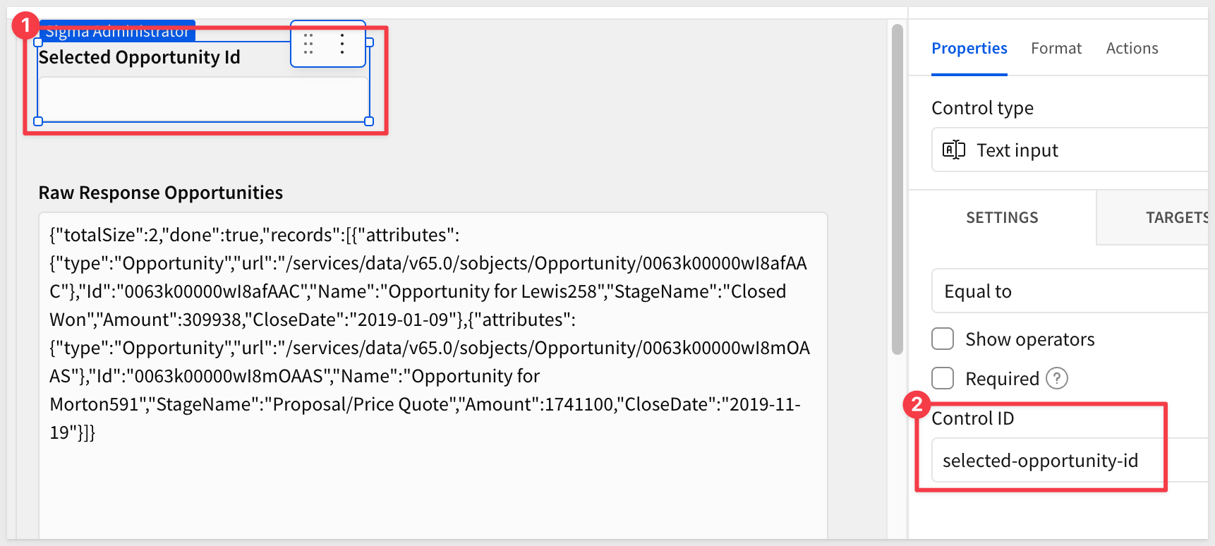 Set the Control ID to selected-opportunity-id.