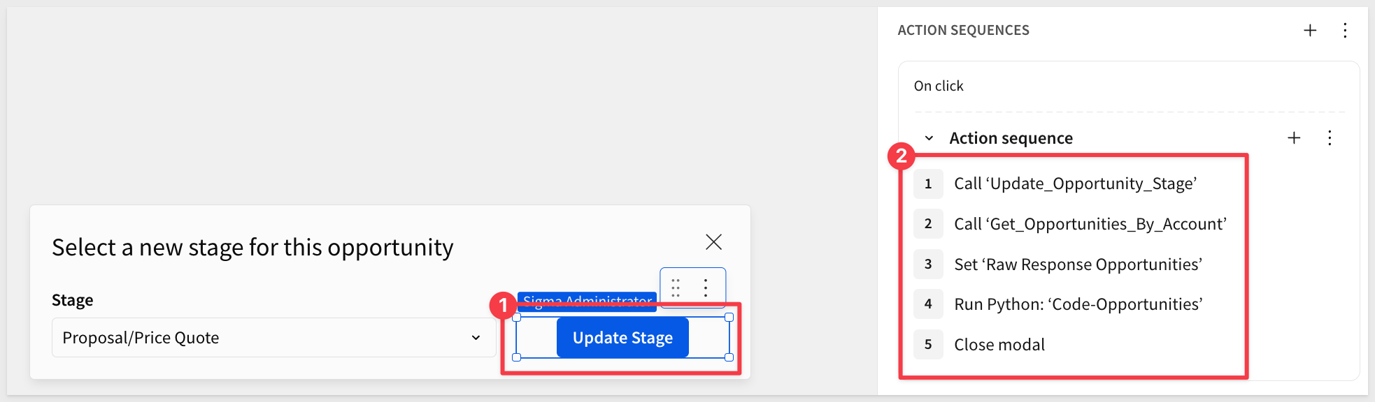With read-only access validated, we can now add a write-back workflow that allows users to update an opportunity's stage directly from Sigma — demonstrating the full bidirectional integration between Sigma and Salesforce.