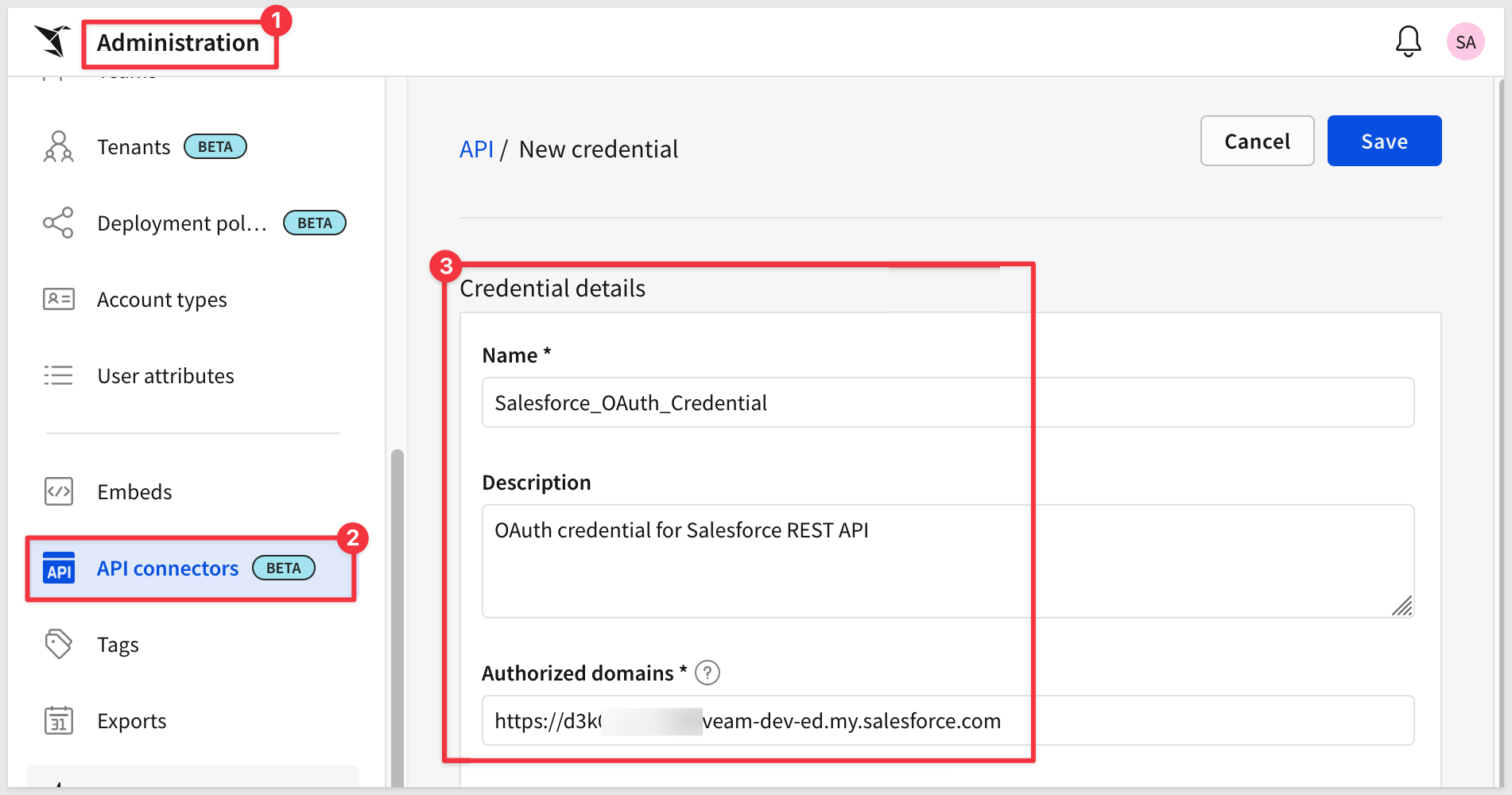 Fill in the Credential details section:
