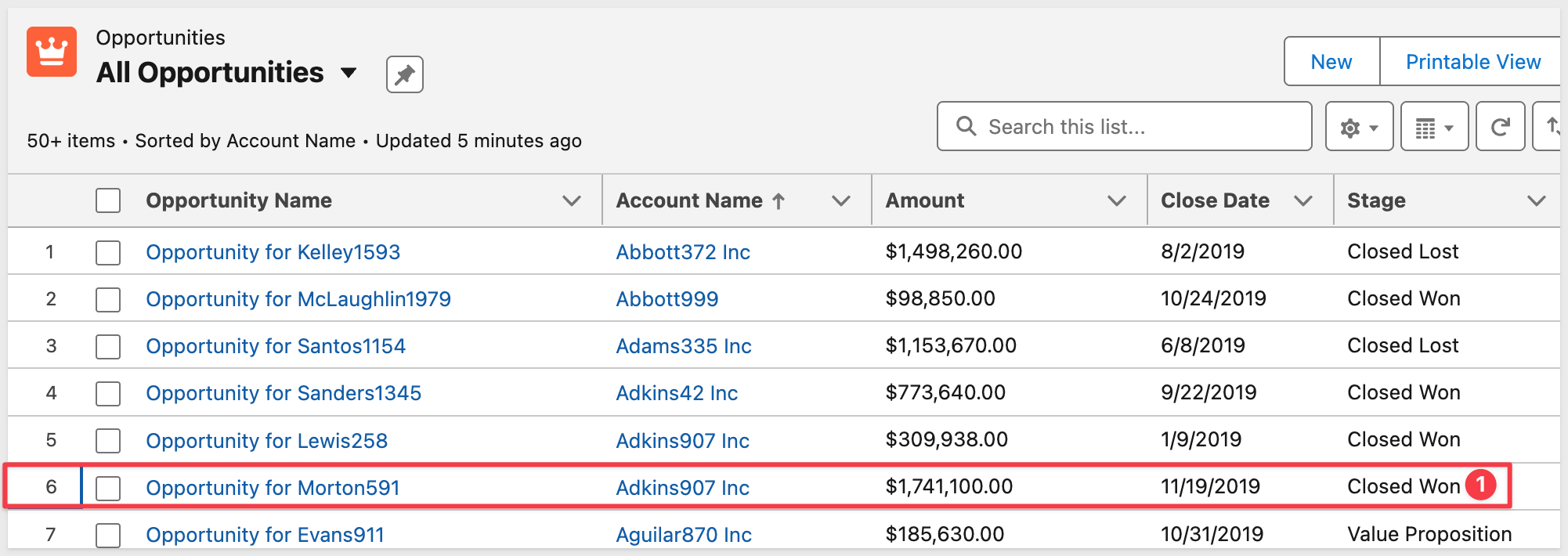 We can confirm the returned opportunity matches in Salesforce as a validation step: