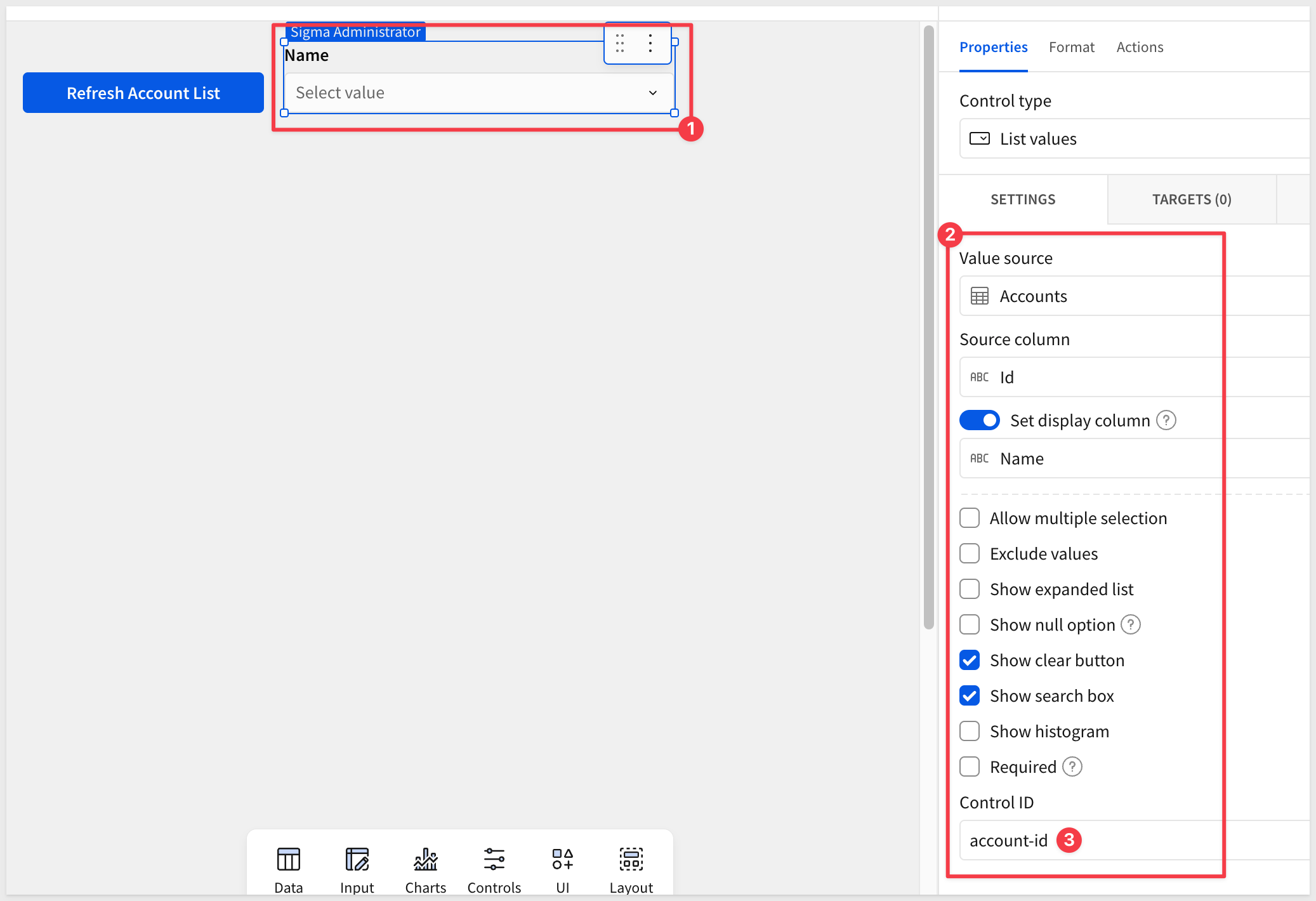 Click Refresh Account List to populate the accounts list.