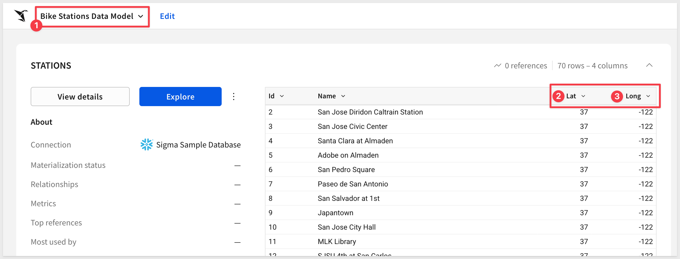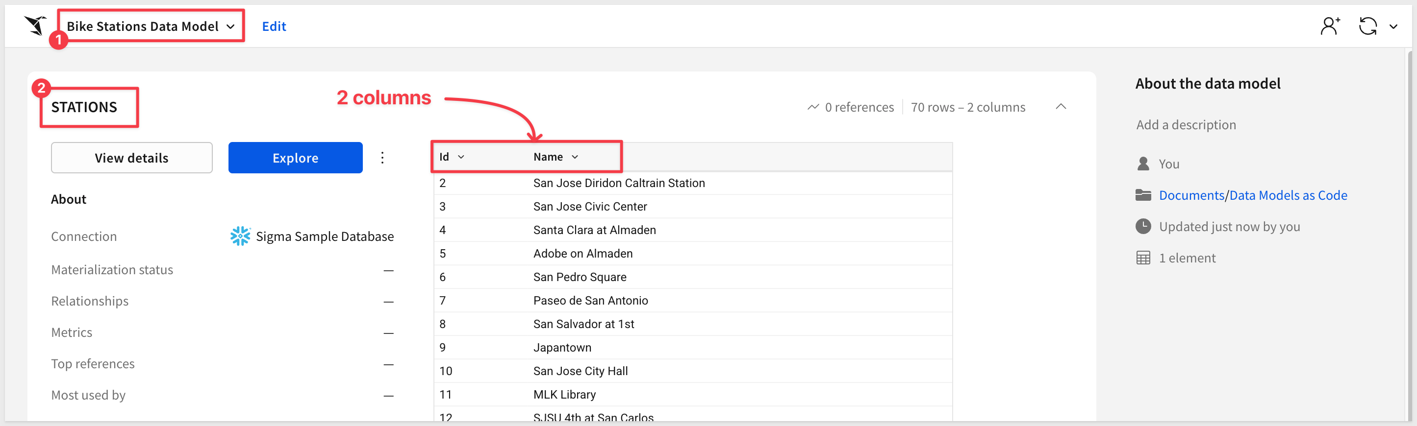 You can now open the data model in Sigma by navigating to the folder you specified and viewing the newly created Bike Stations Data Model.