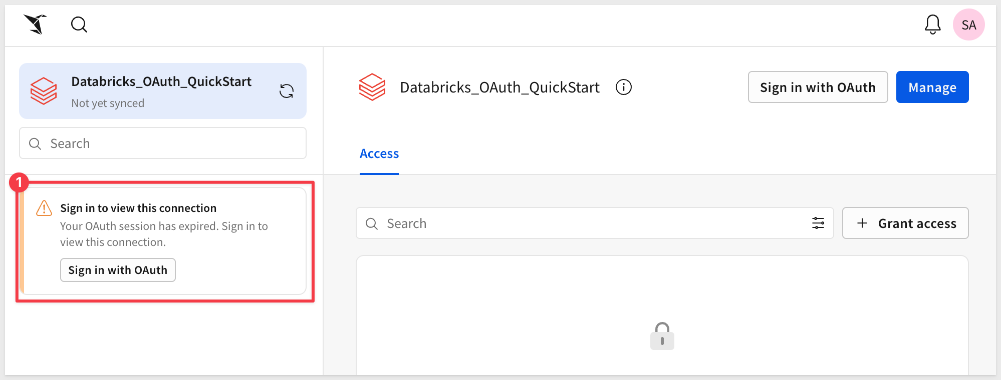 Before you can use the Databricks OAuth connection, you need to complete the OAuth authorization flow.