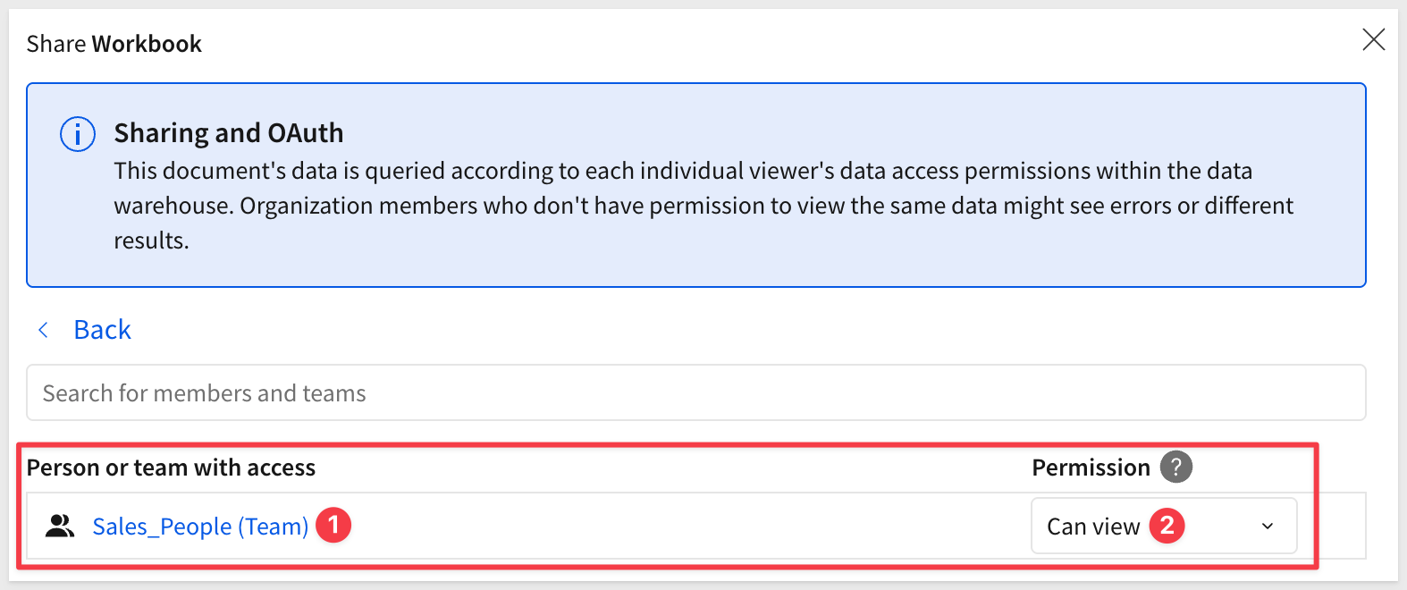 Sales_People team (or the team you're using for embedded users)Select the appropriate access level (typically Can use for embedded users) and confirm: