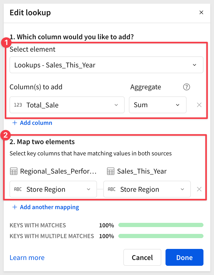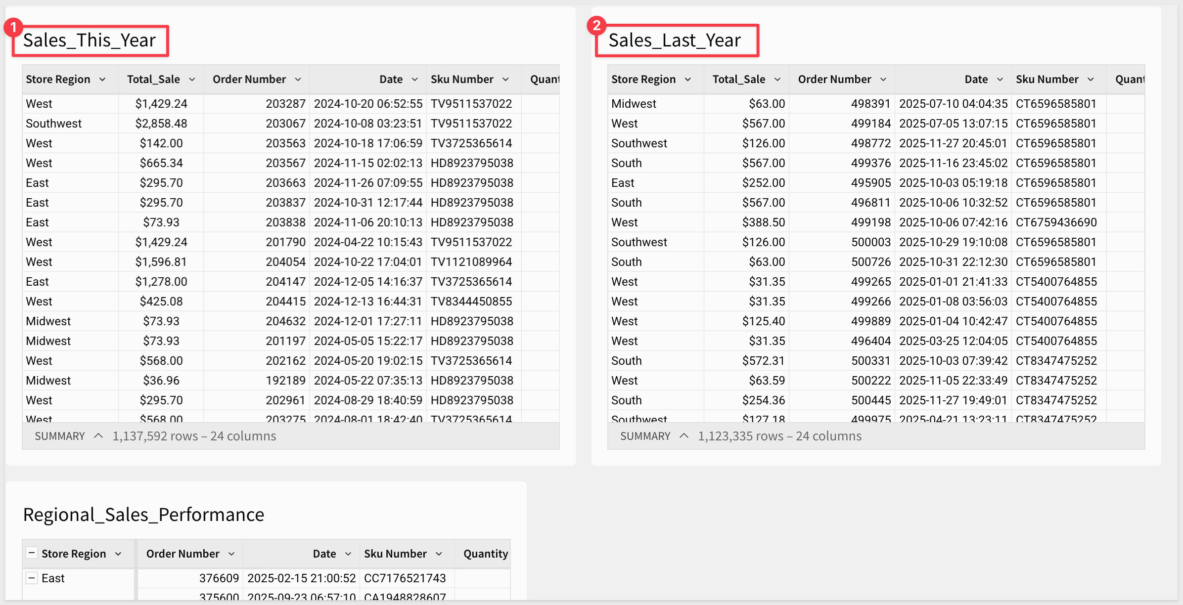 Now let's use lookups to bring both years' sales into the Regional_Sales_Performance table.
