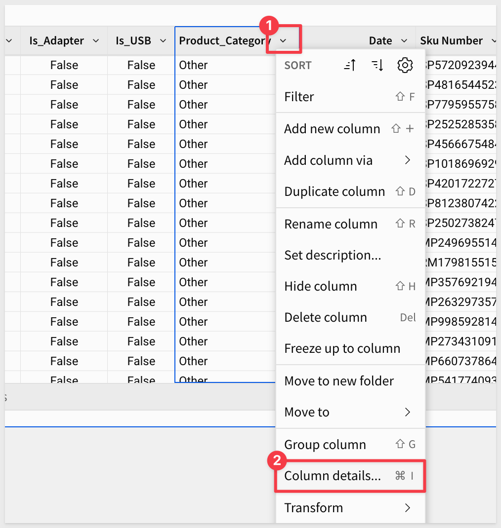 Navigate back to the Data page and add a new column to the PLUGS_ELECTRONICS_HANDS_ON_LAB_DATA table:
