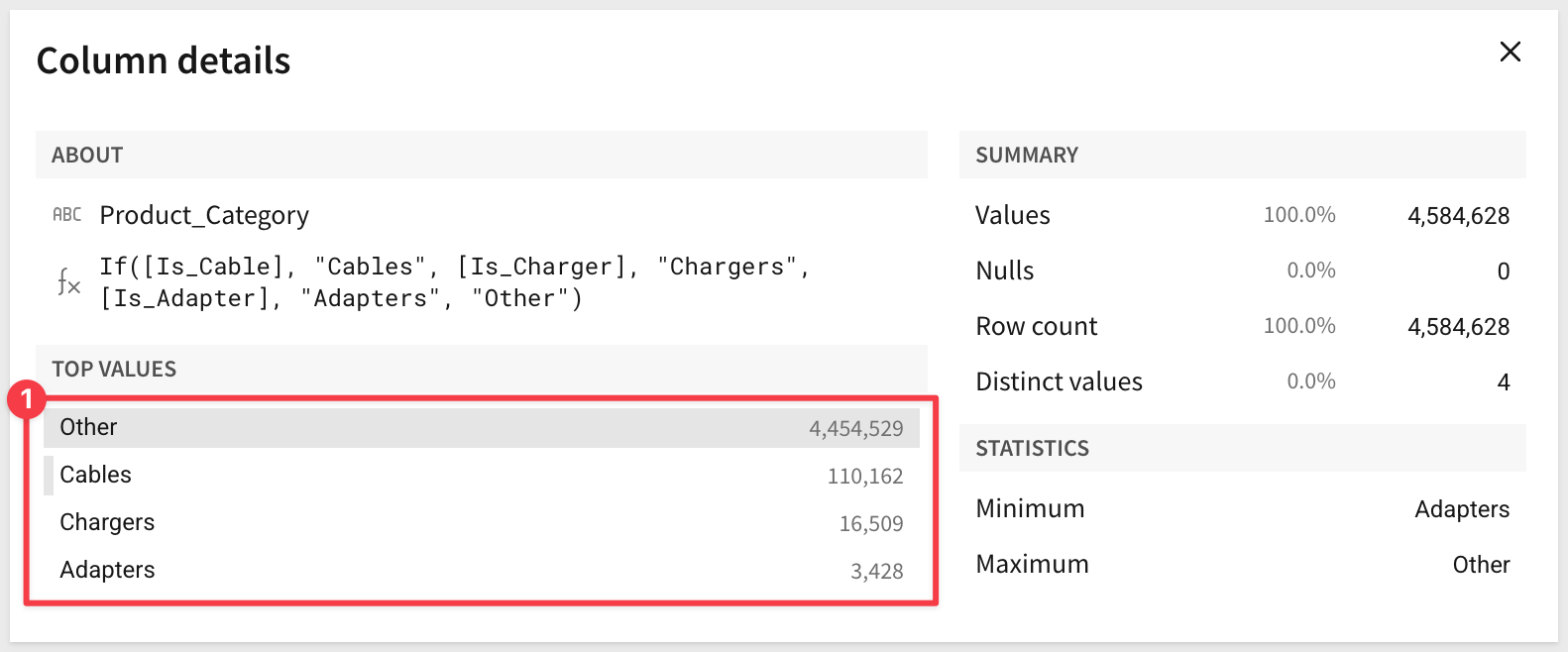 With over 4 million rows, it can be hard to see the distribution. To do that quickly, we can look at column details: