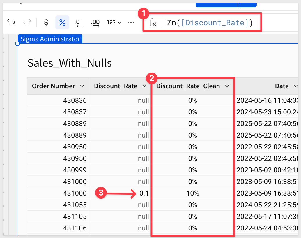 The Zn and Coalesce functions help handle null values in your data, which is essential for accurate calculations and clean reporting.