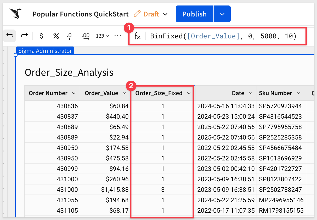 The BinFixed and BinRange functions allow you to group numeric data into categories or "bins" for easier analysis.
