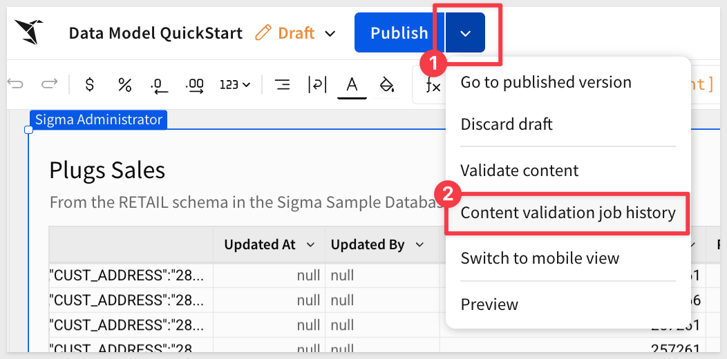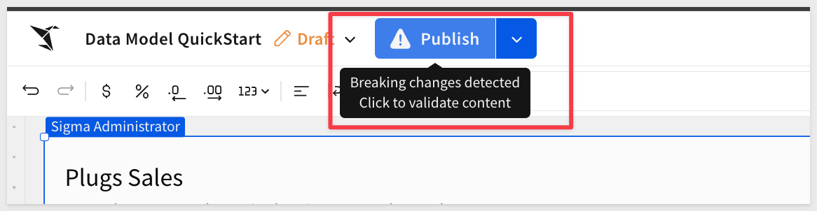 When changes are made to a published data model, those changes can impact downstream workbooks and other documents that reference it. Sigma's content validation feature prevents these breaking changes from cascading silently.