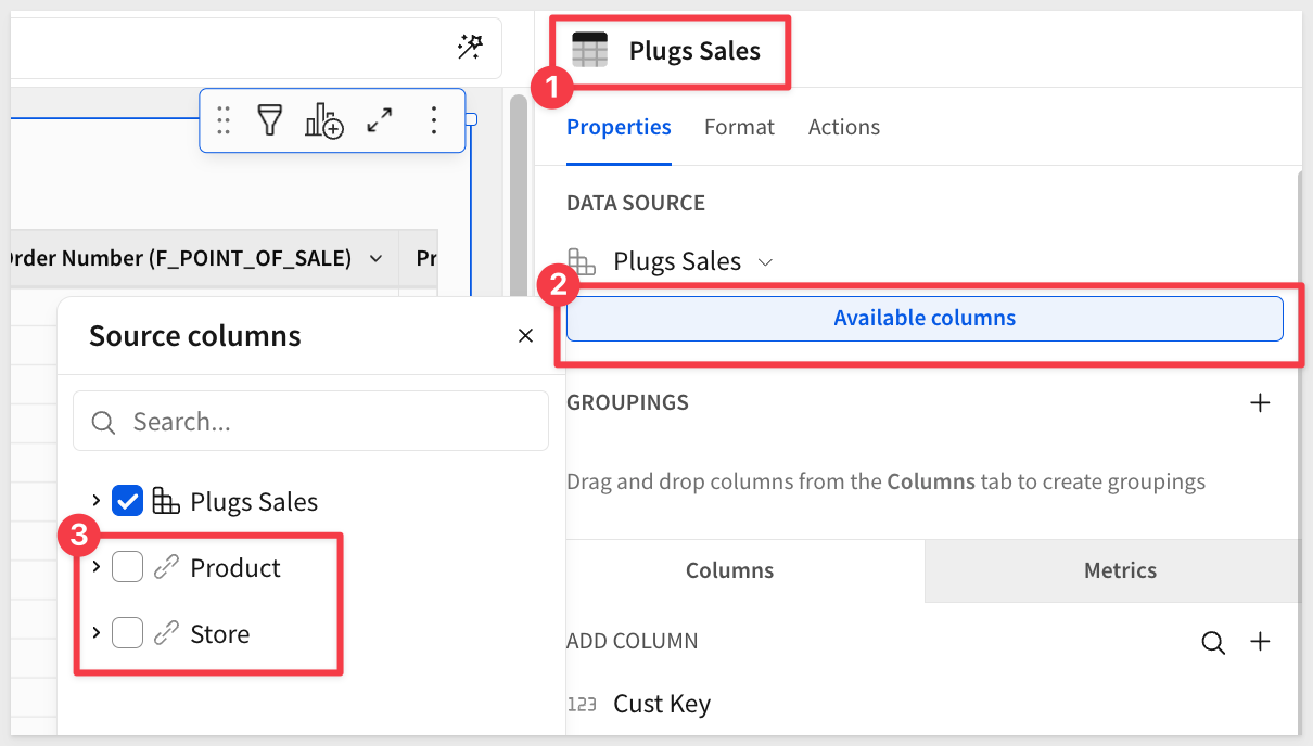 From Plugs Sales, select Element source > Join from the table menu: