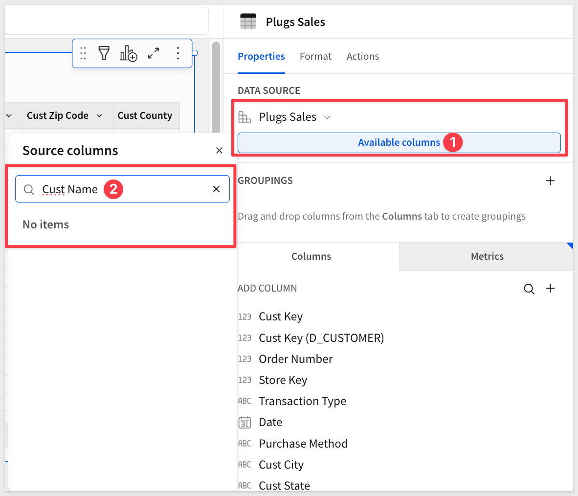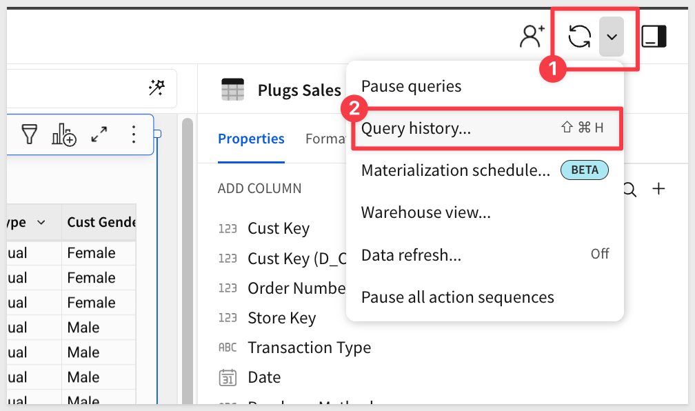 Close query history and reselect the Plugs Sales table.