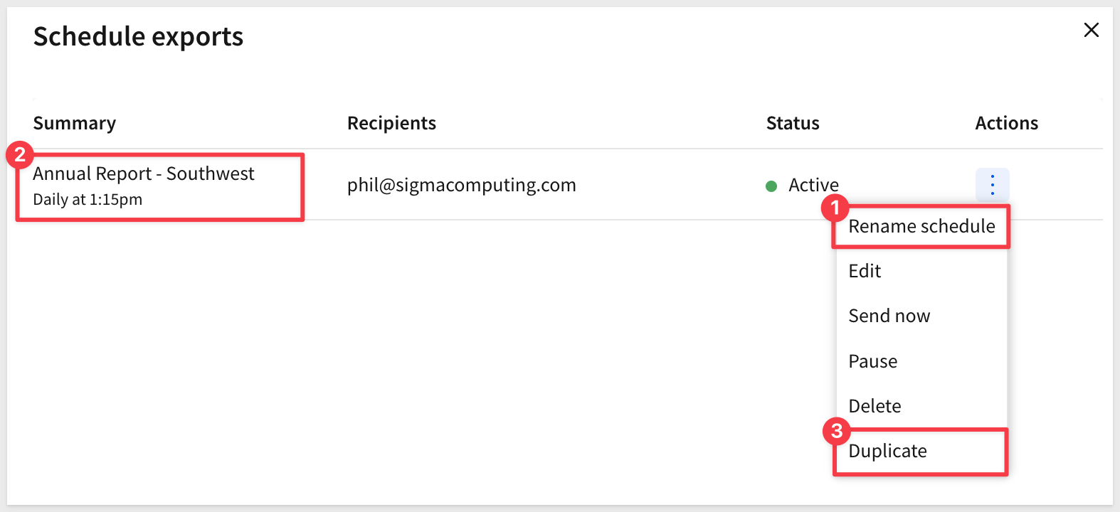 Configuring a report for delivery in Sigma is just like scheduling for a workbook.
