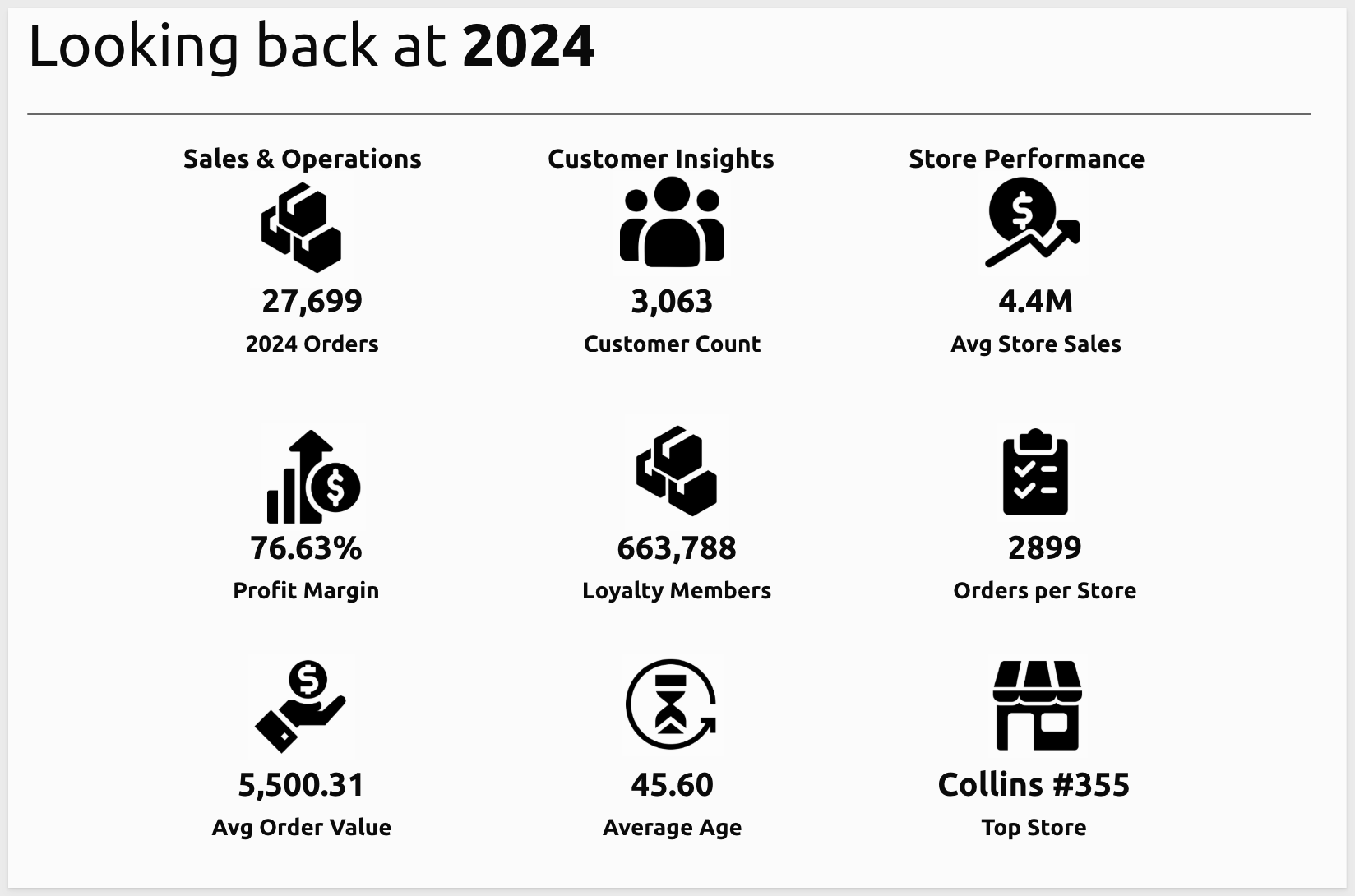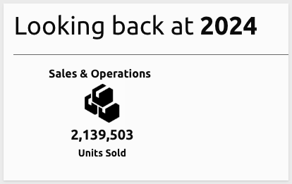 The first will be for Sales & Operations and make use of a metric from our data tables summary row value for Units Sold in 2024.