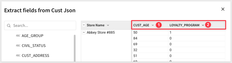 Select CUST_AGE and LOYALTY_PROGRAM and click Confirm: