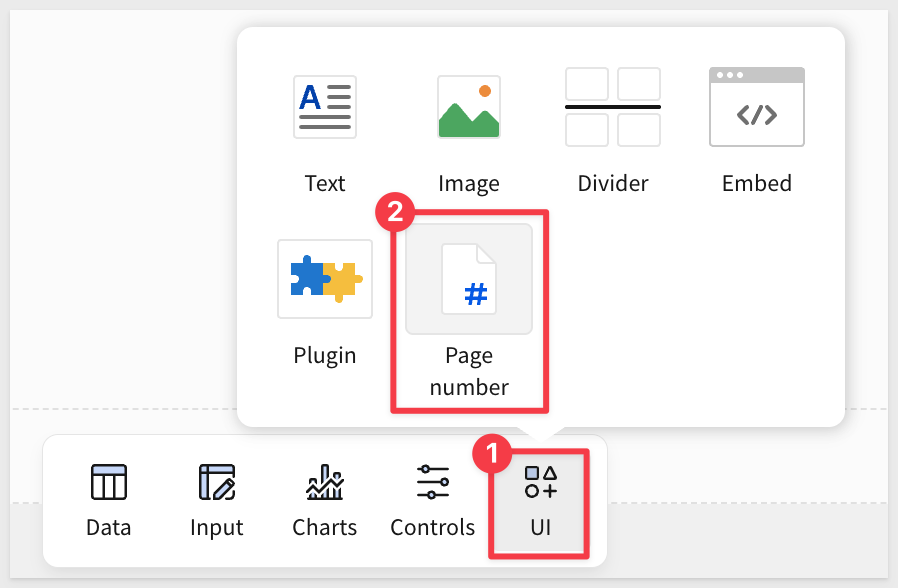 Add the Page number control to the footer: