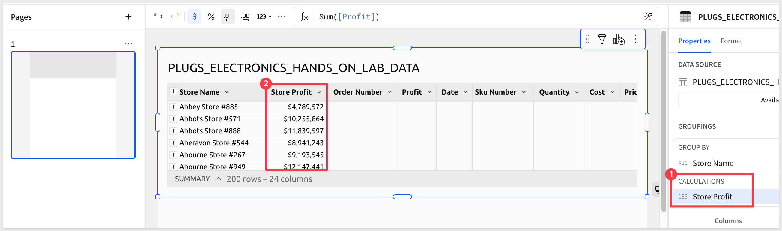 Move the Calc column that we just added to the CALCULATIONS under the Store Name group and rename the column to Store Profit.